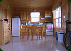 Die Wohnküche ist mit einem Elektroherd, einer Kaffemaschine, einer großzügigen Kühl- Gefrierkombination, einem Eßtisch, 4 Stühlen, einer kleine gemütlichen Coutchgarintur und einem Kasettenradio ausgestattet.